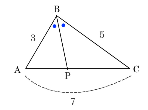 ∠ABCの二等分線とACベクトルに交わったP点について考える